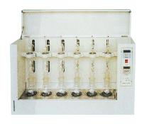 本公司引进脂肪测定新技术,结合我国国情研制而成。设计合理、性能稳定、准确度高、操作省力、省时,测定结果符合国家(GB5512-85)标准,各项指标达到较高水平。该仪器是食品、油脂、饲料等行业测定脂肪的优质设备。本仪器根据索氏抽提原理、用重量测定方法来测定脂肪含量。即在有机溶剂下溶解脂肪,用抽提法使脂肪从溶剂中分离出来,然后烘干,称量,计算出脂肪含量。本仪器主要有加热抽提,溶剂回收和冷却三大部分组成。操作时可以根据试剂沸点和环境温度不同而调节加热温度,试样在抽提过程反复浸泡及抽提,从而达到快速测定目的。技术指标1、测定范围:含油量在0.5%-60%范围内的粮食、饲料、油料及各种脂肪制品2、测定样品:6个/每批3、抽提时间可调到时报警4、工作电压:交流220V5、电加热功率:800W6、控温范围:室温~100℃7、外型尺寸:860×200×550mm38、重量:20kg